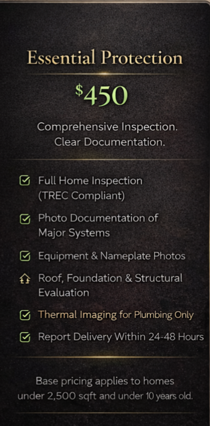 - ✓Full Home Inspection (TREC Compliant)