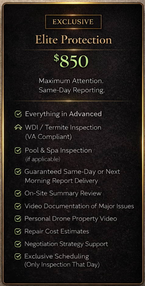 Clarity. Documentation. Negotiation leverage. Every package is designed to reduce risk and increase confidence before you close.